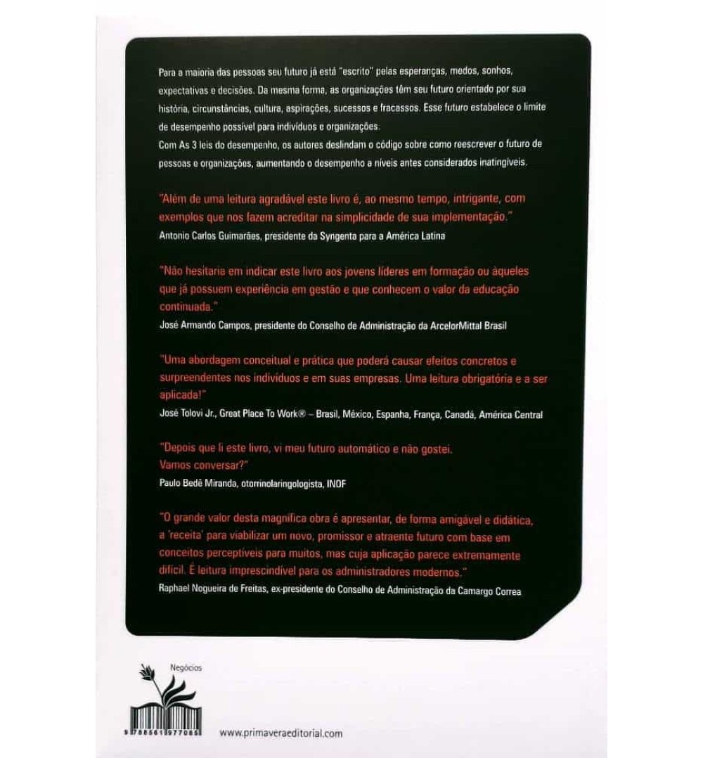 Livro As 3 Leis do Desempenho, uma publicação que apresenta por meio das experiências reais de projetos de consultoria corporativa, os autores formularam as leis que permitem ao leitor encontrar o caminho para reescrever o próprio futuro e o futuro da organização em que atua profissionalmente, produzindo níveis de desempenho e resultados antes considerados impossíveis de alcançar. Os casos reais que explicam e ensinam as três leis do desempenho envolvem empresas e seus contextos culturais na África do Sul, Brasil, Estados Unidos, Japão, Nova Zelândia e peru em grandes organizações e multinacionais, além de contar situações individuais.