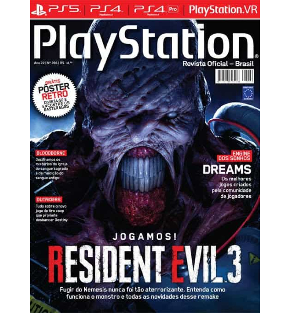 Uma publicação que apresenta dicas e truques dos melhores lançamentos para Playstation. Resident Evil 3, Fugir do Nemesis nunca foi tão aterrorizante. Entenda como funciona o monstro e todas as novidades dessa remake; Bloodborne: Deciframos os mistérios da igreja do sangue sagrado e da maldição do sangue antigo; Outriders: Tudo sobre o novo jogo de tiro coop que promete desbancar Destiny; Engine dos sonhos, Dreams; Os melhores jogos criados pela comunidade de jogadores e muito mais.