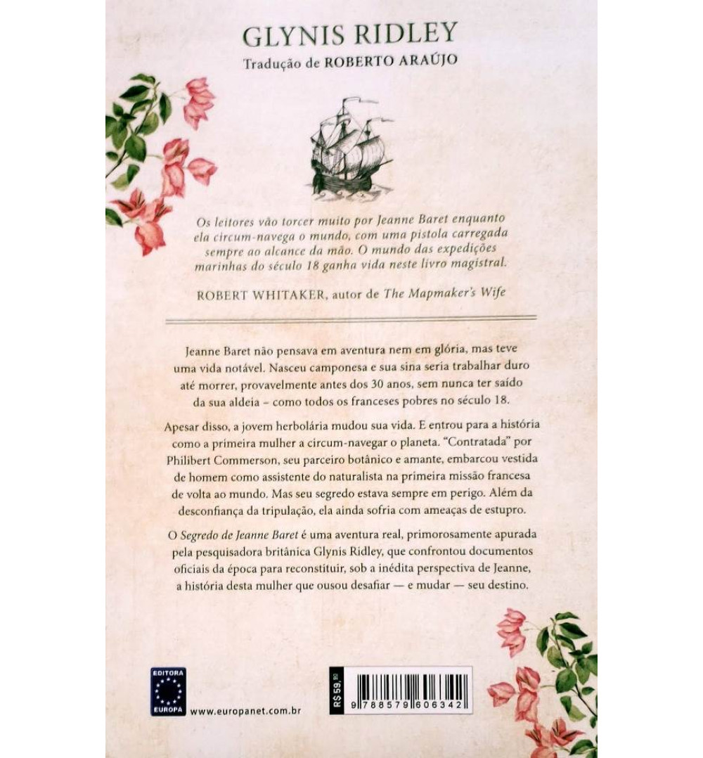 Etiquetas: Livros, Biografia, Jeanne Baret, Navegação, Herbolária Camponesa, Botânico Aristocrata Philibert de Commerson, Plantas, Estudo das Plantas, Buganvília, Louis-Antoine de Bougainville, Livro de Navegação, Livro de História, História da Navegação, Editora Europa, Glynis Ridley
