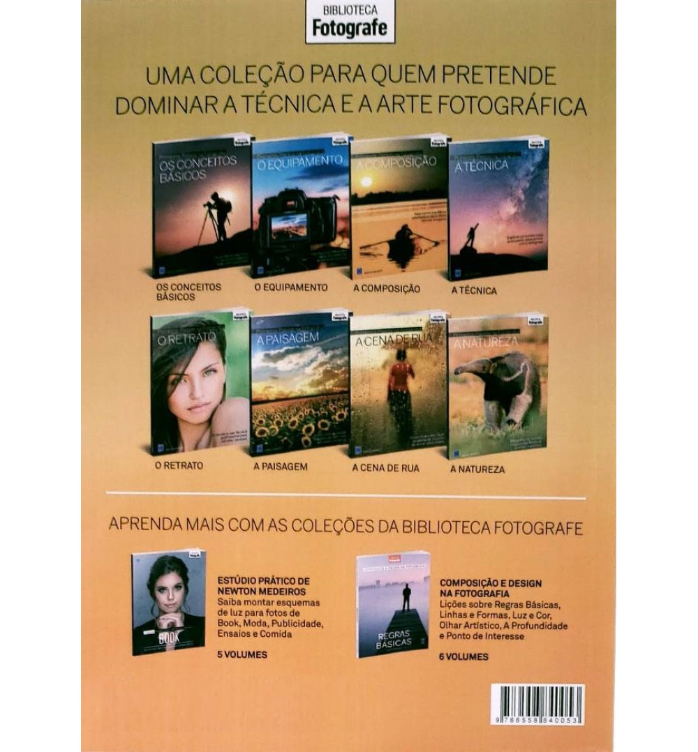 Coleção Primeiros Passos na Fotografia contempla os mais importantes pontos para você entender da técnica fotográfica na teoria e na prática. Com informações objetivas e imagens de alta qualidade como exemplos ilustrativos, os oito volumes têm como meta criar uma base sólida para quem quer se tornar um fotógrafo de alto nível, seja com um smartphone, uma câmera mirrorless ou uma reflex digital.