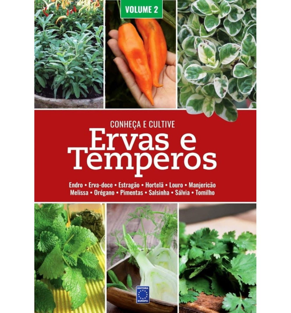 Etiquetas: Livros, Conheça e Cultive, Ervas e Temperos, Plantar, Regar, Adubar, Colher, Ingredientes, Cultivo, Jardinagem, Cultivar, Ervas, Temperos, Plantado em Vasos, Canteiros, Endro, Erva-doce, Estragão, Hortelã, Louro, Manjericão, Melissa, Orégano, Pimentas, Salsinha, Sálvia, Tomilho, Livro de Cultivo, Livro dos Temperos, Livro das Ervas, Livro de Gastronomia, História da Gastronomia, Editora Europa