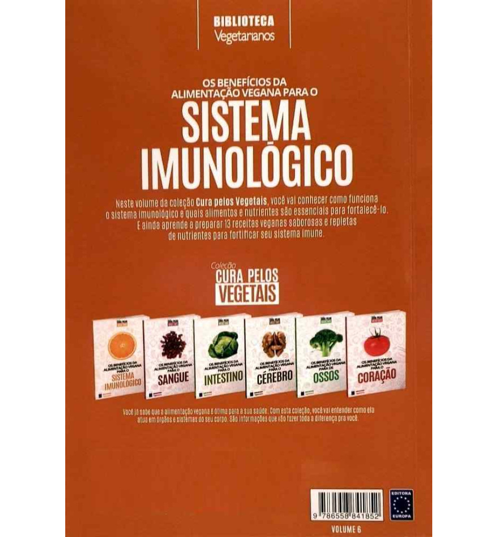 Etiquetas: Livros, Coleção Cura Pelos Vegetais, Vegetarianismo, Biblioteca Natureza e Vegetarianos, Sistema Imunológico, Alimentação Vegana, Alimentos, Nutrientes, Receitas Veganas, Receitas Veganas, Receitas Saudáveis, Alimentação Vegetal, Sucos de Imunidade, Smoothie de Frutas Vermelhas, Massala Chai, Salada Colorida, Couvelícia, Risoto Integral, Arroz com Especiarias, Dhal de Grão-de-bico, Farofa de Lentilha, Lentilha Mediterrânea, Pudim de Chia, Banana em Calda, Papelote de Frutas, Saúde, Alimentos, Alimentação Vegetal Natural, Livro dos Vegetais, História dos Vegetais, Saúde e Bem Estar, Livro de Saúde, Editora Europa
