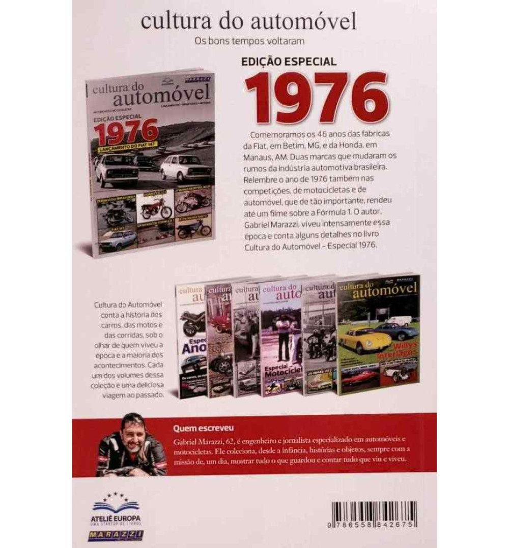 Etiquetas: Livros, Coleção Cultura do Automóvel, Carros, Lançamento do Fiat 147, História da Fábrica da Fiat, História da Fábrica da Honda, GP Brasil 1976, Emerson Fitipaldi, Copersucar, Automóvel, 24 Horas de Interlagos, Fórmula 1, Motos, Motocicletas, História dos Carros, Livro do Fiat 147, Livro de Carros, História do Fiat 147, Editora Europa, Gabriel Marazzi