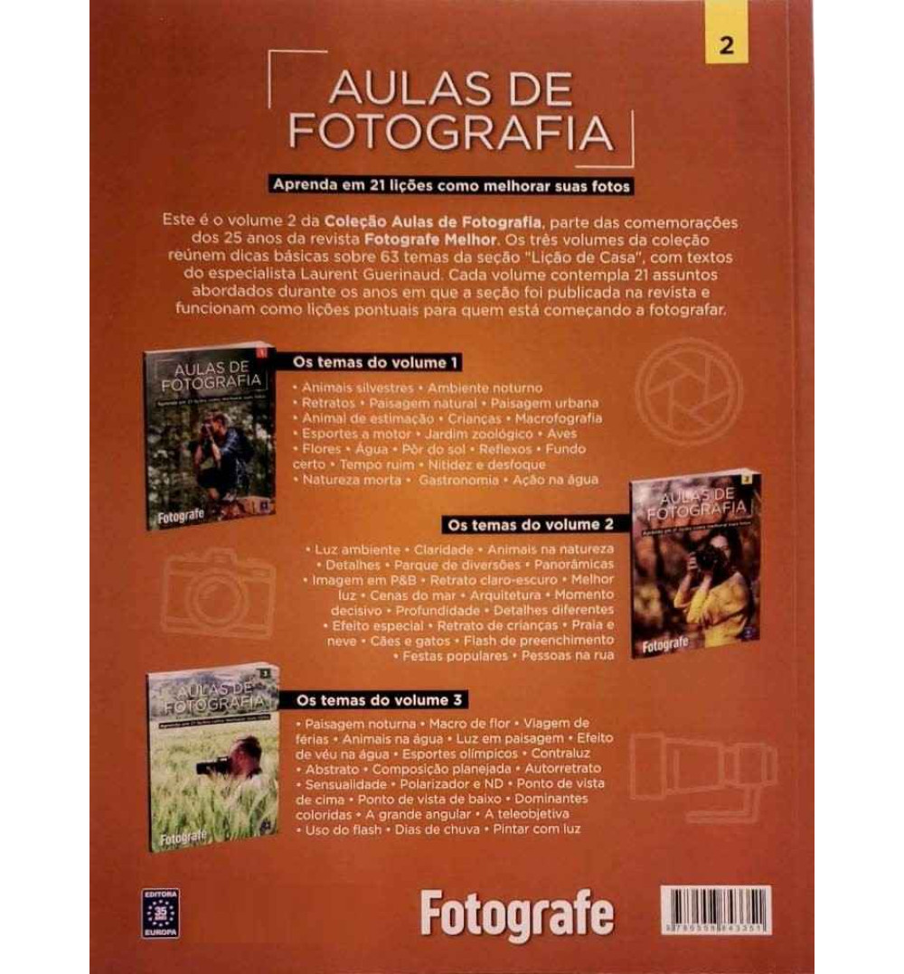 Uma publicação que apresenta dicas básicas sobre 63 temas da seção Lição de Casa, com textos do especialista Laurent Guerinaud. Cada obra contempla 21 assuntos abordados durante os anos em que a seção foi publicada na Revista Fotografe Melhor e funcionam como lições pontuais para quem está começando a fotografar.