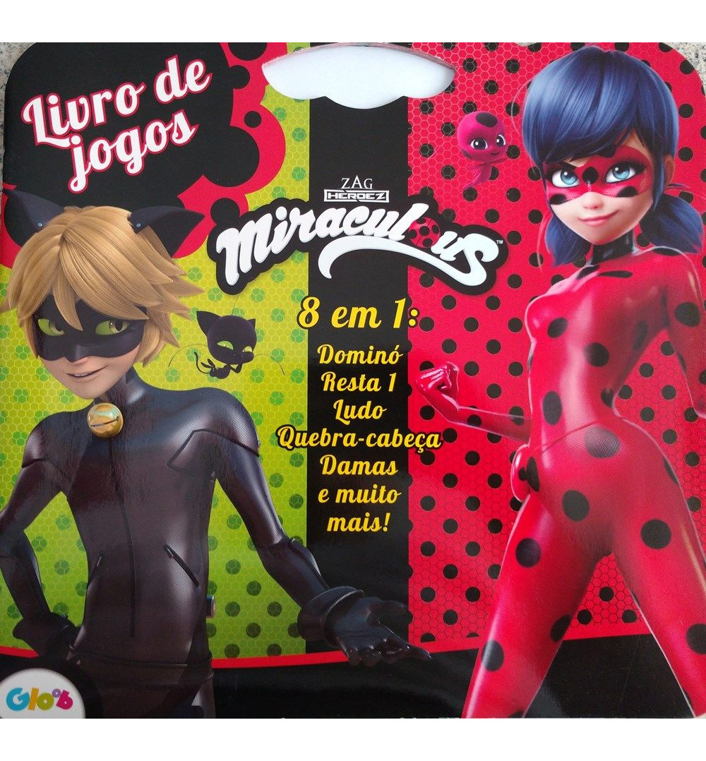 Livro de Jogos Miraculous Ladybug, uma publicação muito divertida com 8 jogos em apenas um livro, Jogo da Memória, Quebra Cabeça, Damas, Dominó, Jogo da Velha, Tangran, Ludo, Resta 1 e muito mais para se divertir com seus amigos.