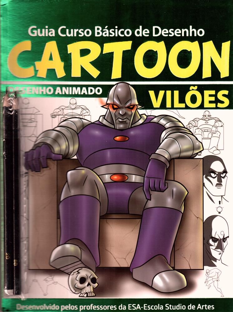 Revista Guia Curso Básico de Desenho Cartoon Vilões Grátis 2 Lápis Pretos