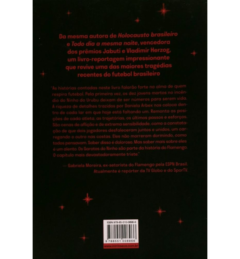 Etiquetas: Livros, Futebol, Flamengo, Ninho do Urubu, Dez Garotos, Garotos do Ninho, Tragédia, Flamengo, Campeão Carioca, Mengão, Campeão Brasileiro 2019, Campeão Libertadores da América 2019, Futebol de Base, Nossos 10, Livro de Futebol, Livro do Flamengo, História do Futebol, História do Flamengo, Editora Intrínseca, Daniela Arbex
