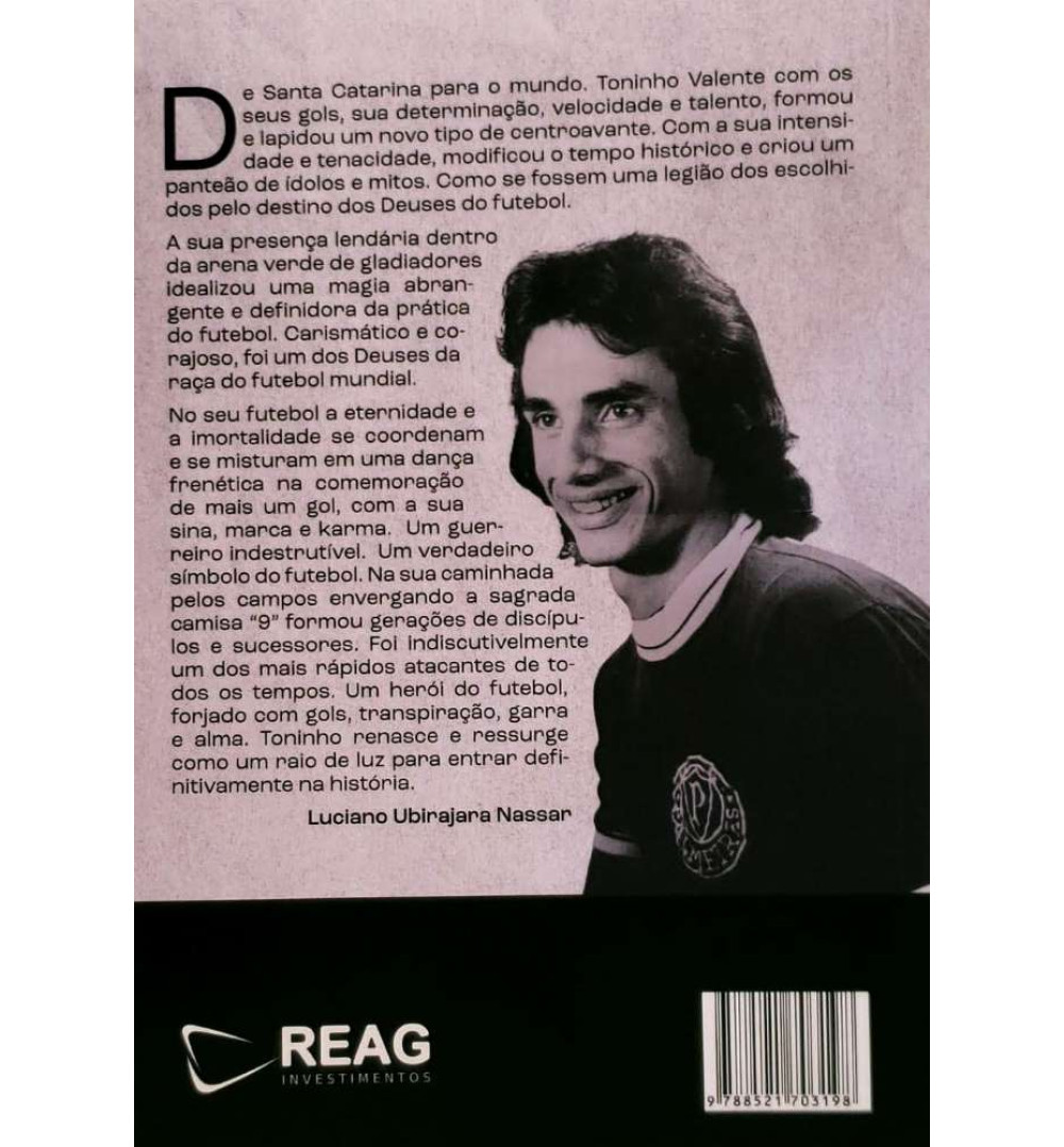 Uma publicação que apresenta a história de Antônio Fernandes Quintino, mais conhecido como Toninho Catarinense ou Toninho Valente. Com os seus gols, sua determinação, velocidade e talento, formou e lapidou um novo tipo de centroavante. Com a sua intensidade e tenacidade, modificou o tempo histórico e criou um panteão de ídolos e mitos. Como se fossem uma legião dos escolhidos pelo destino dos Deuses do futebol.