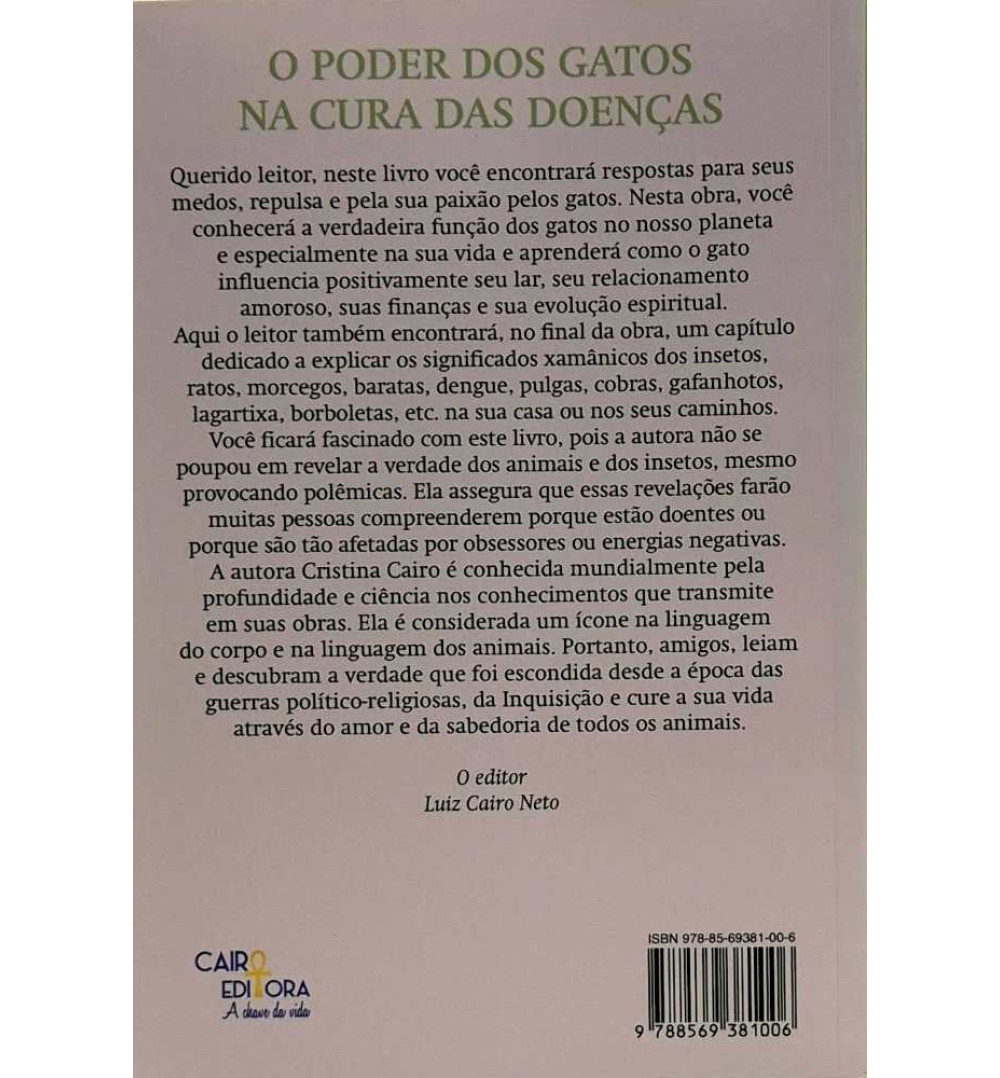 Etiquetas: Livros, Poder dos Gatos, Autoajuda, Paixão Por Gatos, Evolução Espiritual, Significados Xamânicos dos Insetos, Significados Xamânicos dos Animais, Auto Ajuda, Energias Negativas, Linguagem do Corpo, Linguagem dos Animais, Guerras Político-religiosas, Inquisição, Harmonia no Lar, Psicologia, Espiritualidade, Linguagem Corporal, Saúde e Bem Estar, Autocuidado, Vida Saudável, Equilíbrio da Saúde, Qualidade de Vida, Livro de Saúde, Livro de Autoajuda, Livro de Autoconhecimento, Livro dos Gatos, Editora Cairo, Cristina Cairo