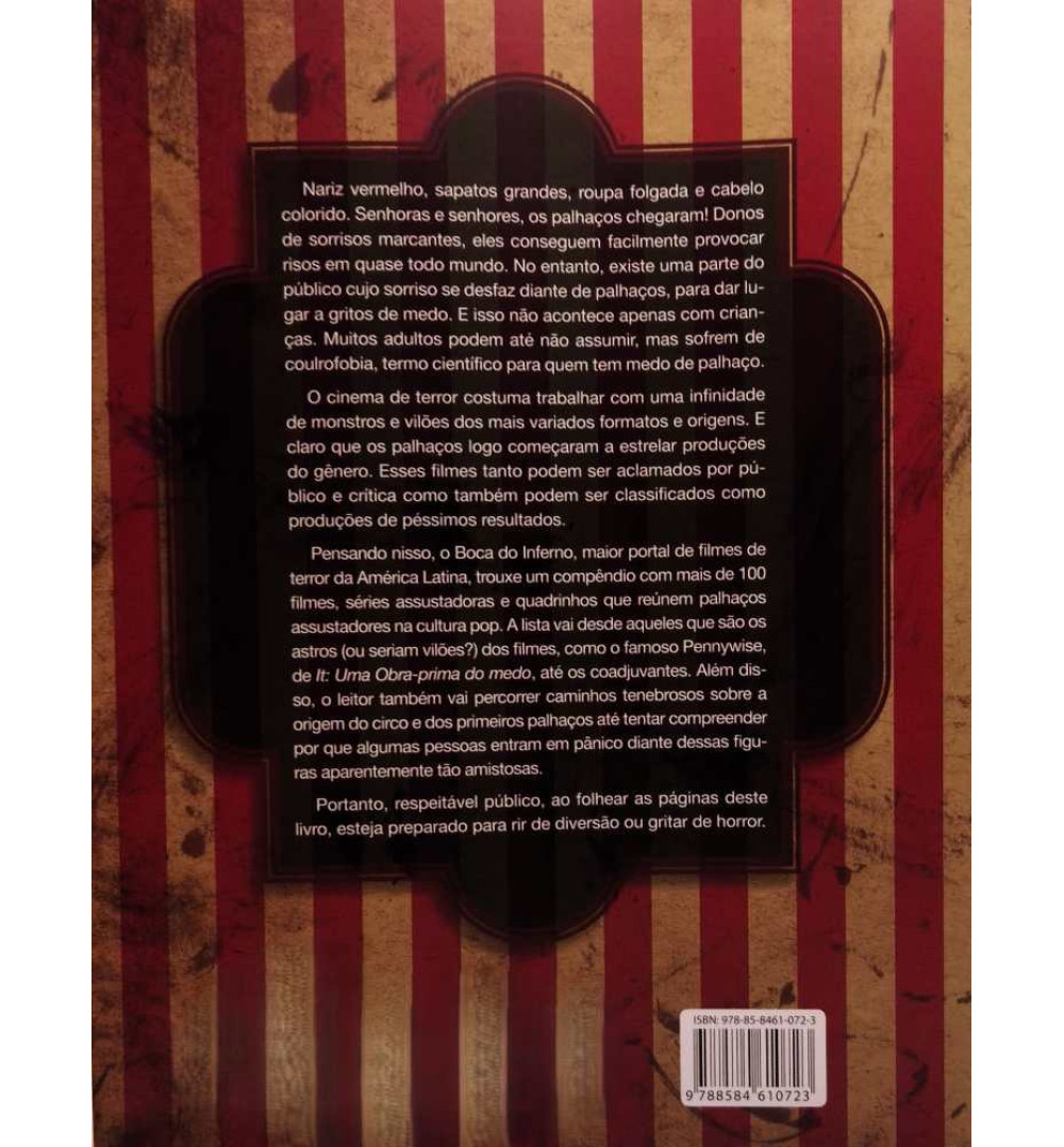 Uma publicação que apresenta um compêndio com mais de 100 filmes e séries assustadoras que reúnem palhaços do cinema de terror. A lista vai desde aqueles que são os astros (ou seriam vilões?) dos filmes, como o famoso Pennywise, de It: Uma obra-prima do medo, até os coadjuvantes. Além disso, o leitor também vai percorrer caminhos tenebrosos sobre a origem do circo e dos primeiros palhaços até tentar compreender por que algumas pessoas entram em pânico diante dessas figuras aparentemente tão amistosas.