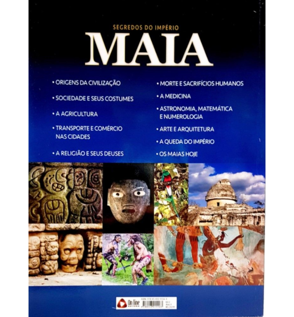 Origem do Império, da Civilização, Sociedade e seus Costumes, Transporte e Comércio, a vida nas cidades, a Agricultura, Religião e seus Deuses, Morte e Sacrifícios Humanos, Arte, Ciência, Arquitetura e Medicina, Astronomia, Matemática e Numerologia, O fim da Civilização Maia, a Queda do Império, os Maias hoje e muito mais.