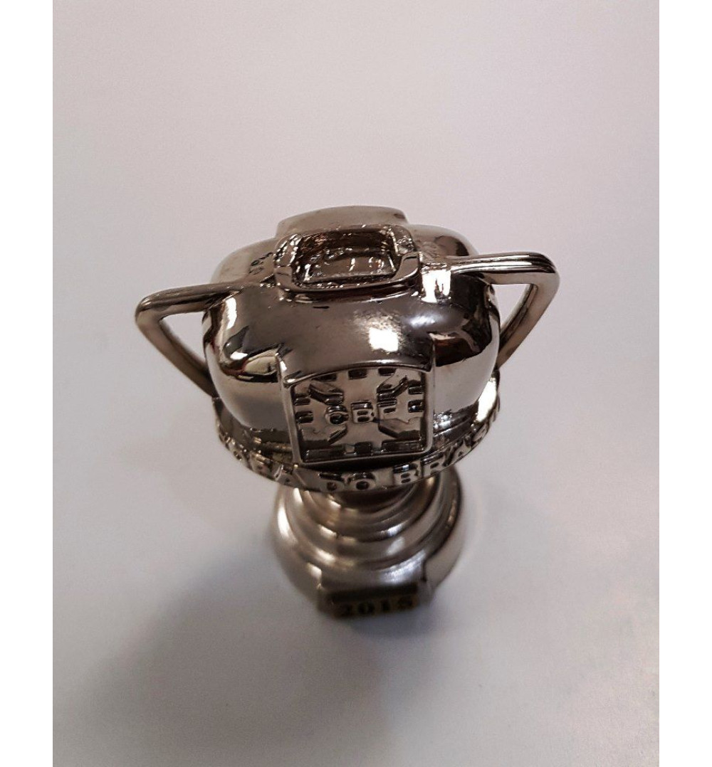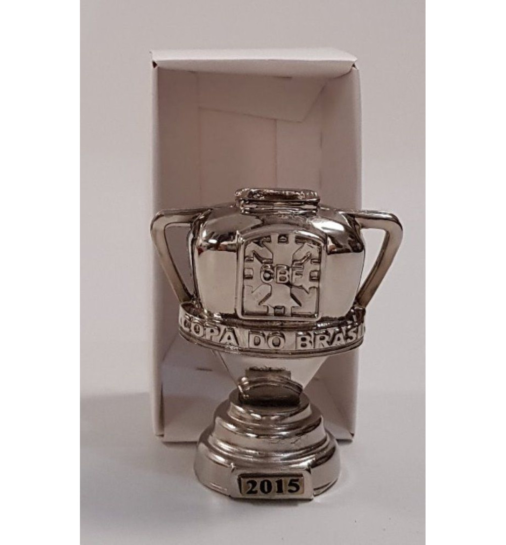 Mini Taça Palmeiras Campeão Copa do Brasil 2015, um produto fabricado em Metal Fundido com revestimento galvânico em Cromo, com 60 mm de altura.
