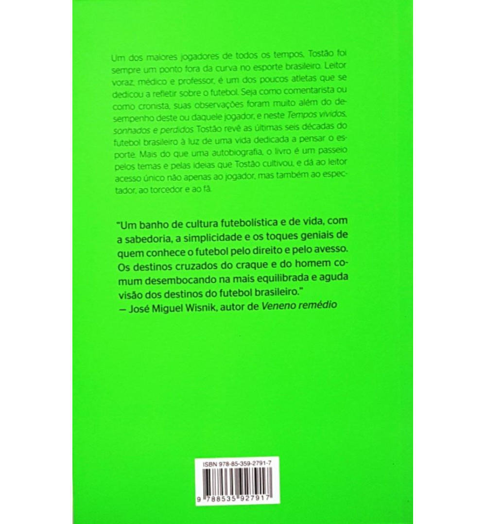 Livro Tostão Tempos Vividos, Sonhados e Perdidos - Um olhar Sobre o Futebol, uma publicação que Tostão revê as últimas seis décadas do futebol brasileiro à luz de uma vida dedicada a pensar o esporte. Mais do que uma autobiografia, o livro é um passeio pelos temas e ideias que Tostão cultivou e dá ao leitor um acesso único não apenas ao jogador, mas também ao espectador, ao torcedor e ao fã.