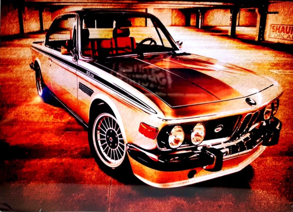 Quadro Retrô BMW 350 CSI 1973, um produto fabricado em madeira, medindo 28,5L x 21A......