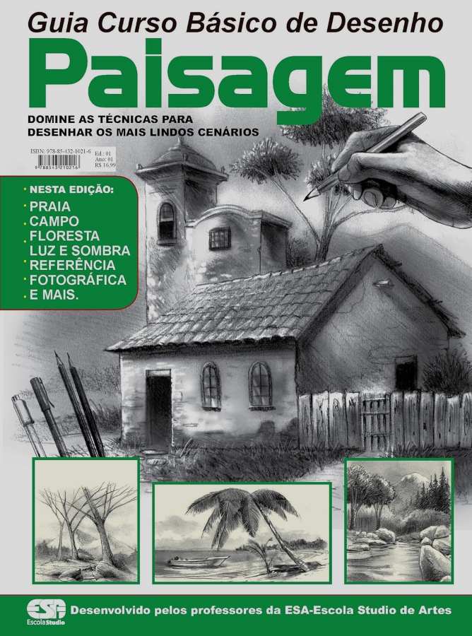 Revista Guia Curso Básico de Desenho – Paisagem.Uma publicação que apresenta um guia que ensina os s.....