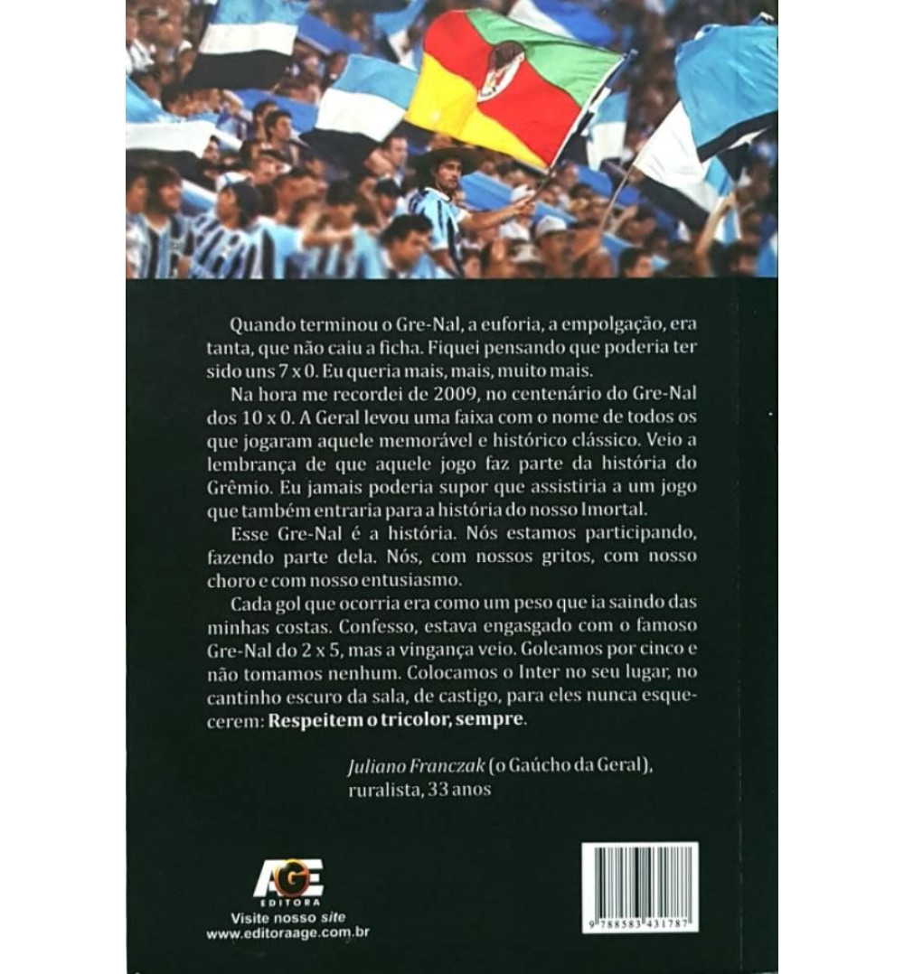 Livro O Inesquecível Gre-nal 407, uma publicação que apresenta a história de uma das Maiores Goleadas da história do Gre-nal, 5 x 0 sobre o Inter. Uma vitória para ser eternizada, para ser lembrada por muitas e muitas gerações.