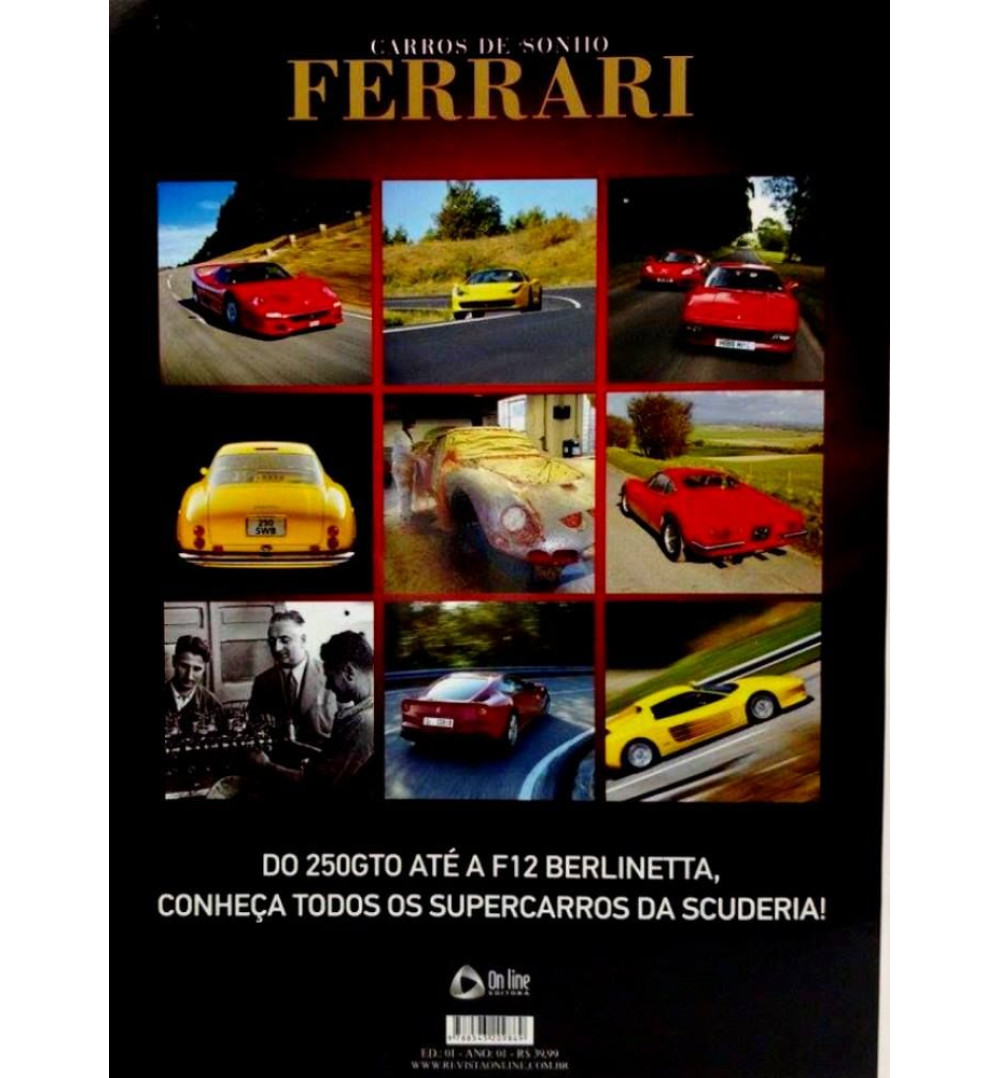 Revista Carros de Sonho Ferrari, uma publicação que apresenta a História de um dos carros mais famosos do Mundo, Ferrari. Do modelo 250 GTO até a F12 Berlinetta, toda História, Trajetória, Curiosidades, Fotos Incríveis de todos os carros da Escuderia mais famosa do mundo.