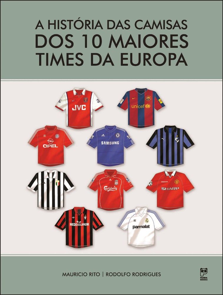 Livro A História das Camisas dos 10 Maiores Times da Europa, uma publicação que mostra ano a ano as .....