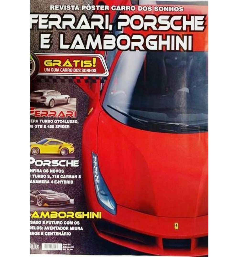 Receba inteiramente GRÁTIS Revista Pôster Carro dos Sonhos Ferrari, Porsche e Lamborghini.