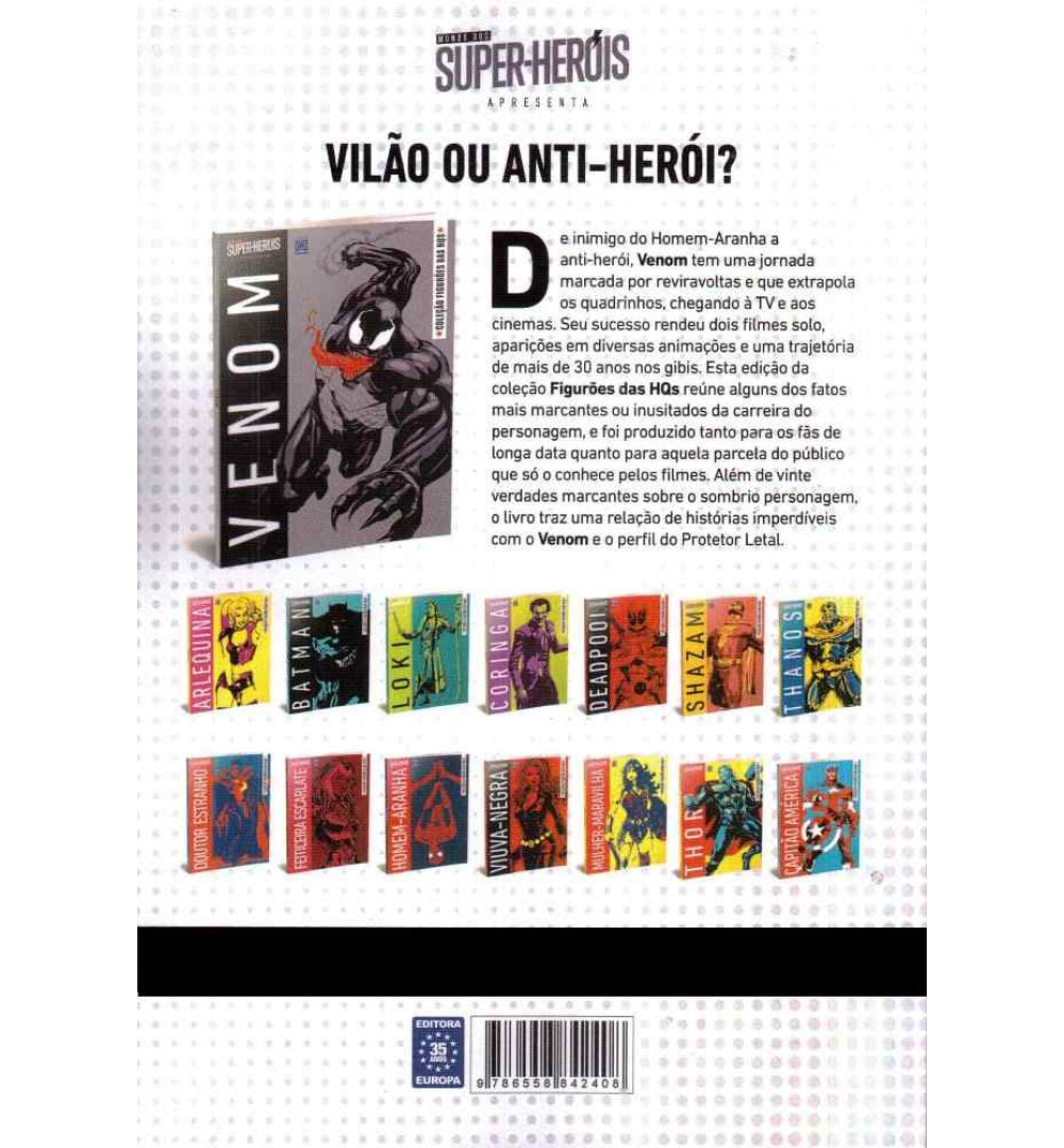 Etiquetas: Livros, Super-Heróis, Coleção Figurões das HQs, Venom, Vilão, Anti-Herói, Quadrinhos, Gibis, Inimigo do Homem-Aranha, Quadrinhos, Cinema, Filmes, HQs, Quadrinhos, Homem-Aranha, Eddie, Marvel, Cinema e Séries, Mundo dos Super-Heróis, História do Venom, Livro do Venom, História dos Super-Heróis, Livro dos Vilões, História dos Quadrinhos, Editora Europa
