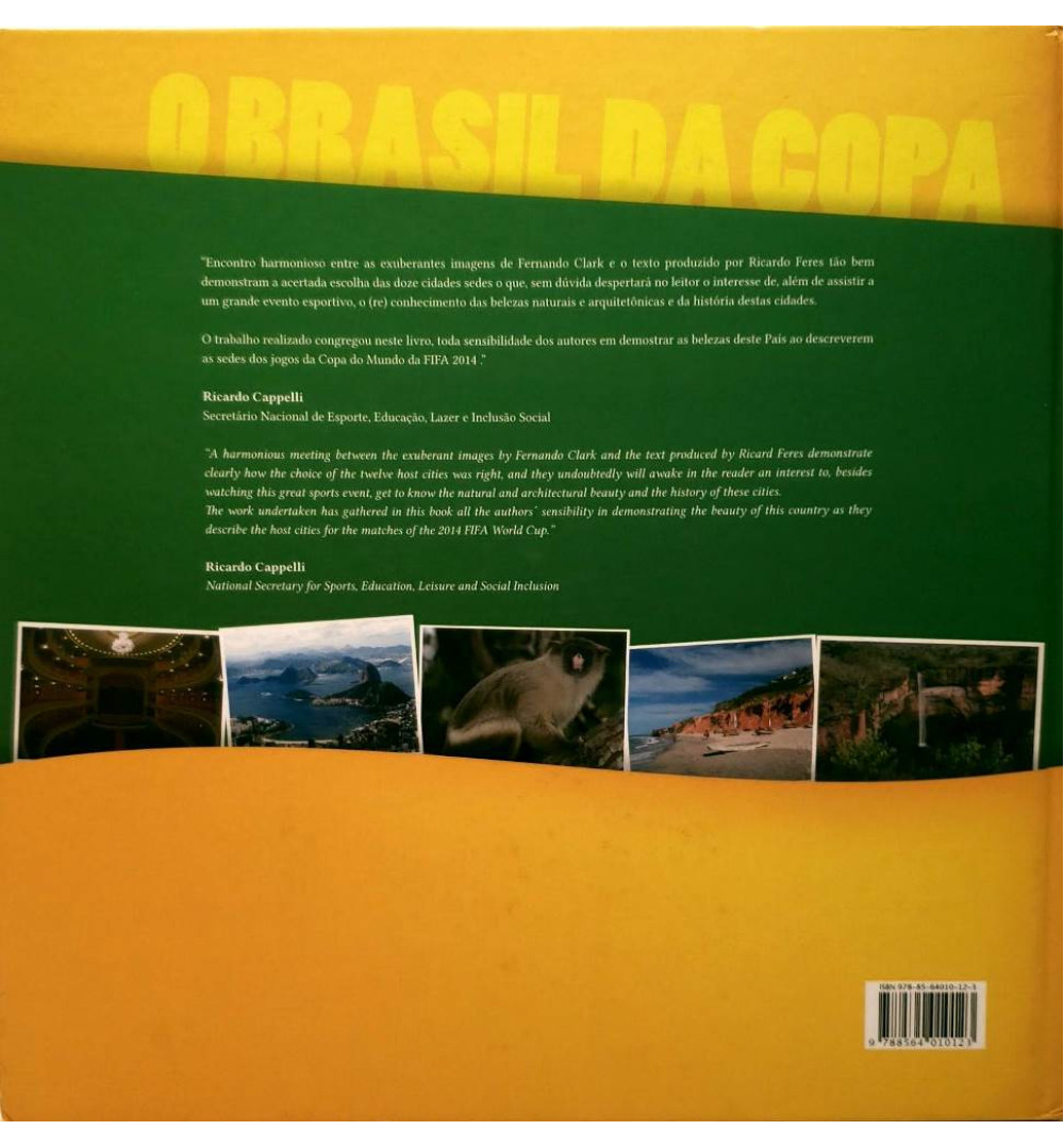 Uma publicação que apresenta o trabalho realizado para demonstrar a beleza do país ao descreverem as sedes dos jogos da Copa do Mundo, com lindas fotos, num encontro harmonioso entre as exuberantes imagens do fotografo Fernando Clark e o texto de Ricardo Feres tão bem demonstram a acertada escolha das 12 cidades sedes da copa, que sem duvida despertará no leitor o interesse além de assistir a um grande evento esportivo e o reconhecimento das belezas naturais, arquitetônicas e da historias destas cidades.