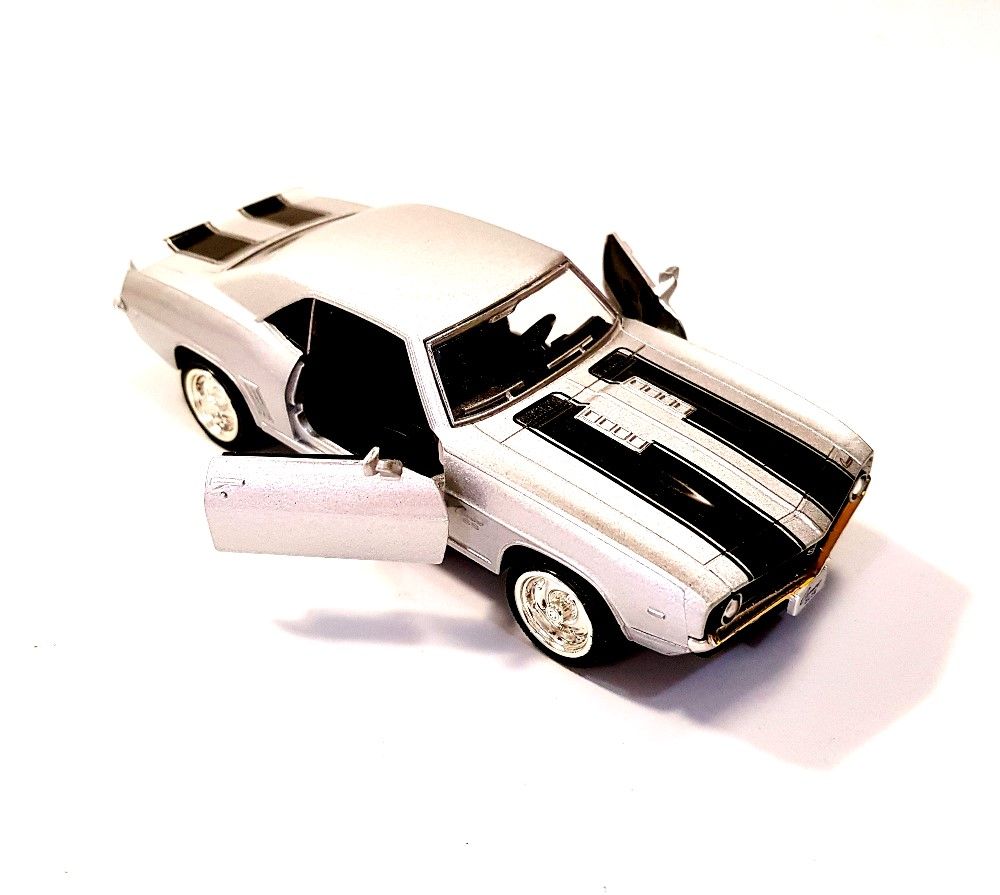 Miniatura Camaro SS 1969 Prata, fabricado em Metal, cor Prata, com Fricção, abertura das portas, Esc.....