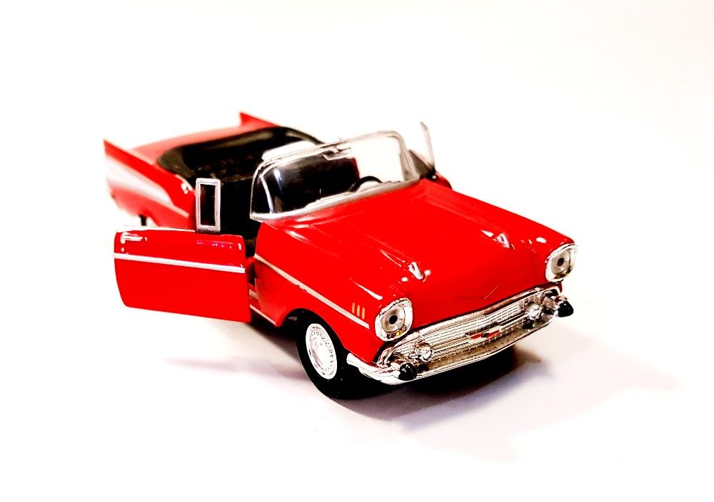 Miniatura Chevrolet Bel Air 1957, fabricado em Metal, cor Vermelha, com Fricção, abertura das portas.....