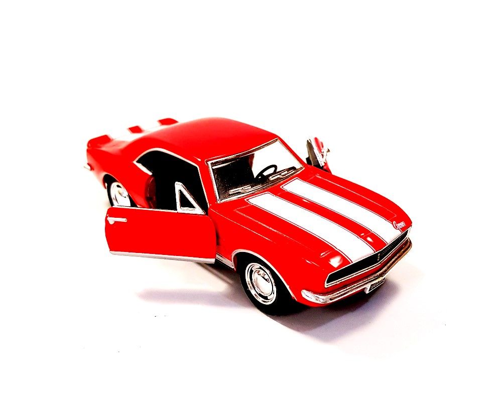 Miniatura Chevrolet Camaro Z 28 1967, fabricado em Metal, cor Vermelha, com Fricção, abertura das po.....