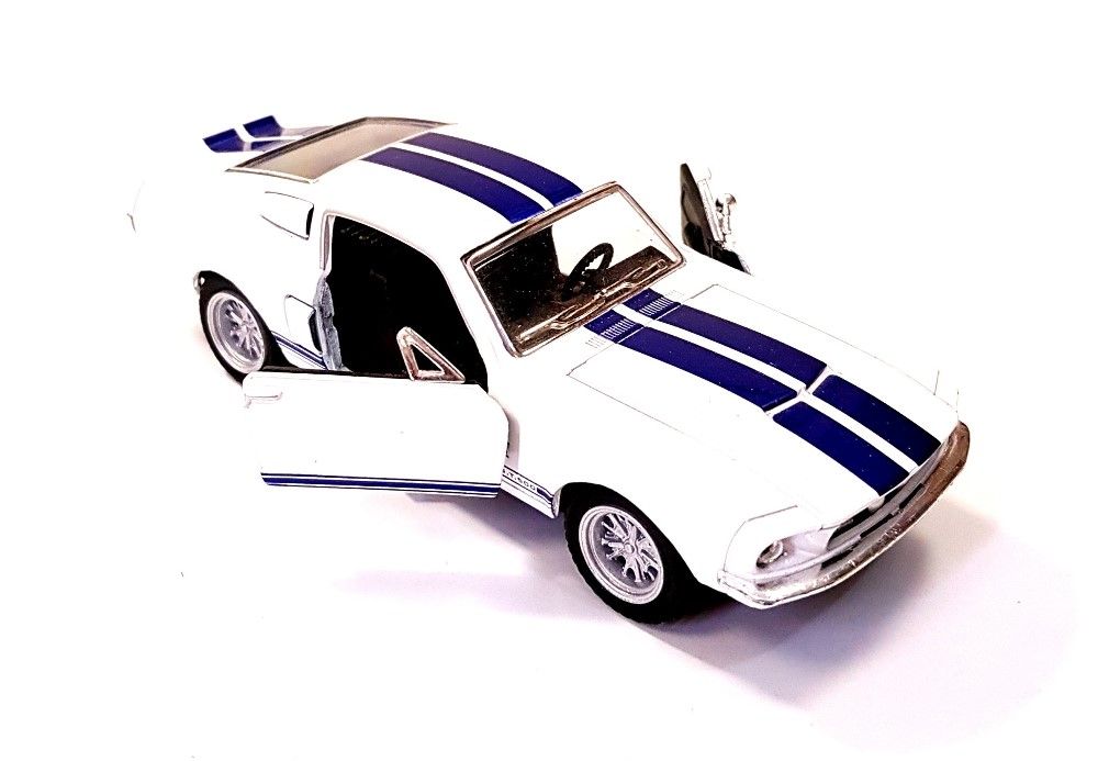 Miniatura Shelby GT 500 1967, fabricado em Metal, cor Branca, com Fricção, abertura das portas, Esca.....