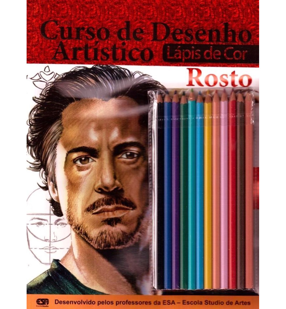Revista Guia Curso de Desenho Artístico Rosto + Kit Lápis de cor GRÁTIS