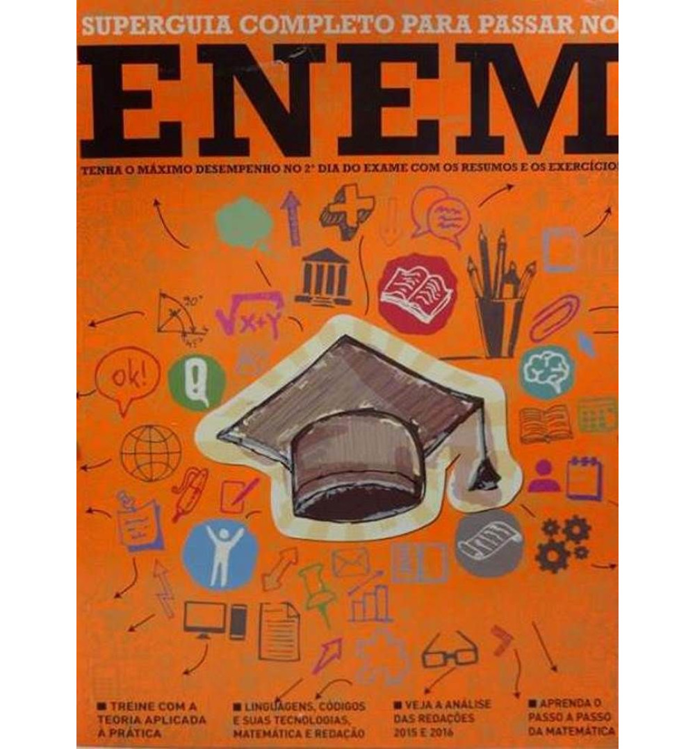 Superguia Completo para Passar no Enem, uma publicação que apresenta os resumos e exercícios para ter o máximo desempenho no 2° dia do exame.