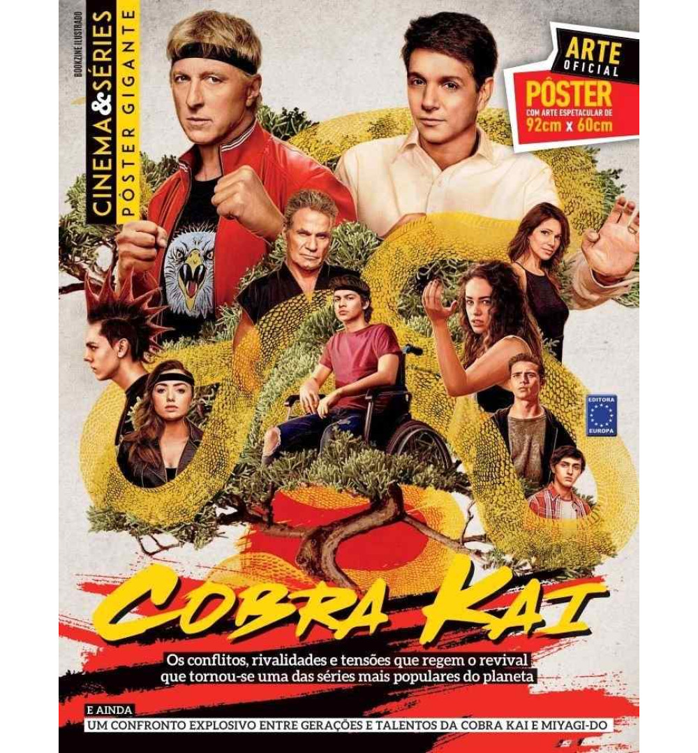 Etiquetas: Revista Pôster, Revistas, Bookzine Cinema e Séries, Cinema, Cobra Kai, Revival de Karate Kid, Netflix, Miyagi-do, All Valley, Johnny Lawrence, Daniel LaRusso, Tory Nichols, Série Netflix, Revista Pôster do Cobra Kai, História do Cobra Kai, Revista Cobra Kai, Editora Europa